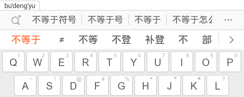 不等于符号手机怎么打 发布时间:2022-06-03 12:57:16 · 1932 阅读 · 0 评论 1、在手机上下载安装一个第三方输入法,如搜狗输入法等。 2、输入“不等于”的拼音“budengyu”。 3、在输入法联想框内,可以找到不等于的符号,点击它即可输入。 需要注意的是,很多手机自带的输入法,并不具备输入不等于符号的功能。所以,用户需要安装一个第三方输入法。 如果大家懒得安装第三方你输入法,也可以直接在本文网页上复制这个“≠”符号,然后粘贴到要输入的地方。