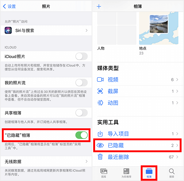 由于私密性不够,所以苹果在iOS14优化了这个功能,添加了一个“已隐藏相簿”开关。