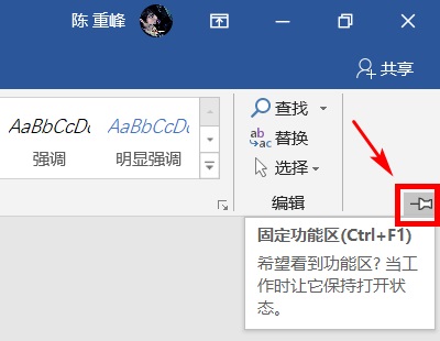 word工具栏隐藏了怎么办 发布时间:2022-06-03 12:56:50 · 1684 阅读 · 0 评论 按快捷键Ctrl+F1,可以让Word工具栏显示出来。再按一次Ctrl+F1,即可重新隐藏工具栏。 另外,大家打开折叠的工具栏,点击右下角的插针图标,也可以让工具栏固定显示。 针对部分老版本Word软件,功能位置可能会有所不同。 用户右键菜单栏空白处,取消勾选“功能区最小化”,就可以解决工具栏的隐藏问题。