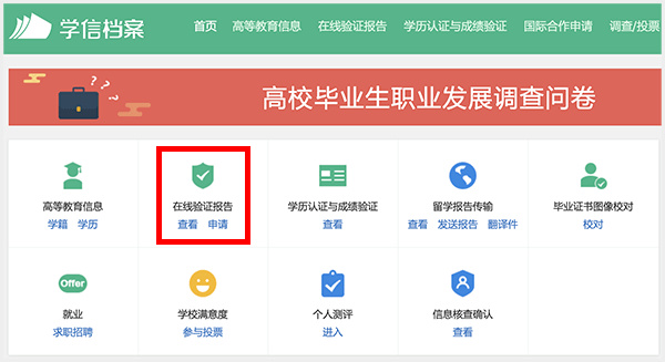 2、成功注册并登录帐号后,点击“在线验证报告”下方的“申请”。